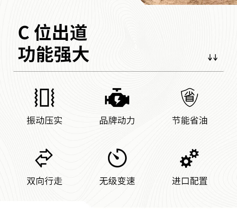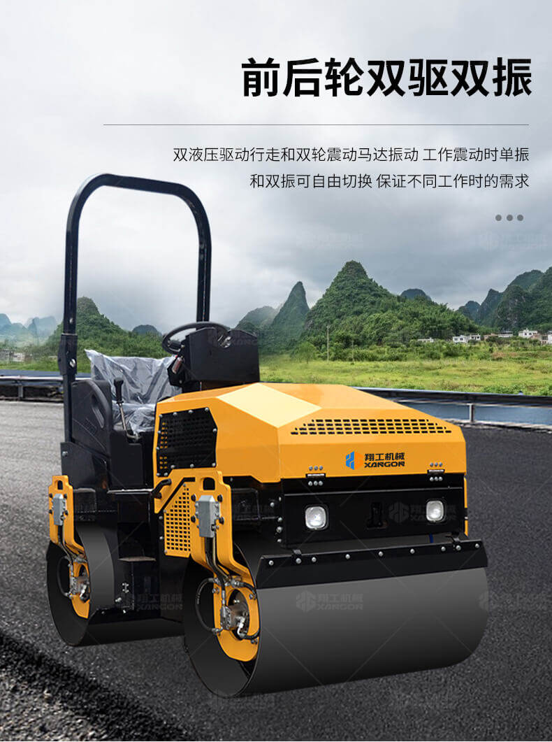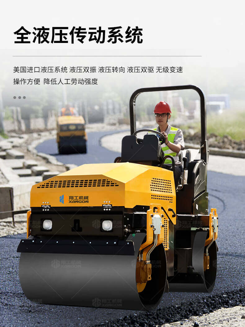 采用進(jìn)口液壓系統(tǒng),雙驅(qū)雙振,前后輪可單獨(dú)調(diào)節(jié)振動(dòng),亦可同時(shí)振動(dòng)。液壓轉(zhuǎn)向,液壓驅(qū)動(dòng),液壓行走,液壓振動(dòng)。進(jìn)口英國(guó)鉑金斯柴油機(jī)三缸水冷四沖程,動(dòng)力強(qiáng)勁,性能穩(wěn)定。超快速度一小時(shí)可達(dá)12千米,無(wú)極變速。壓土,碎石,壓瀝青,壓回填土效果超乎想象。