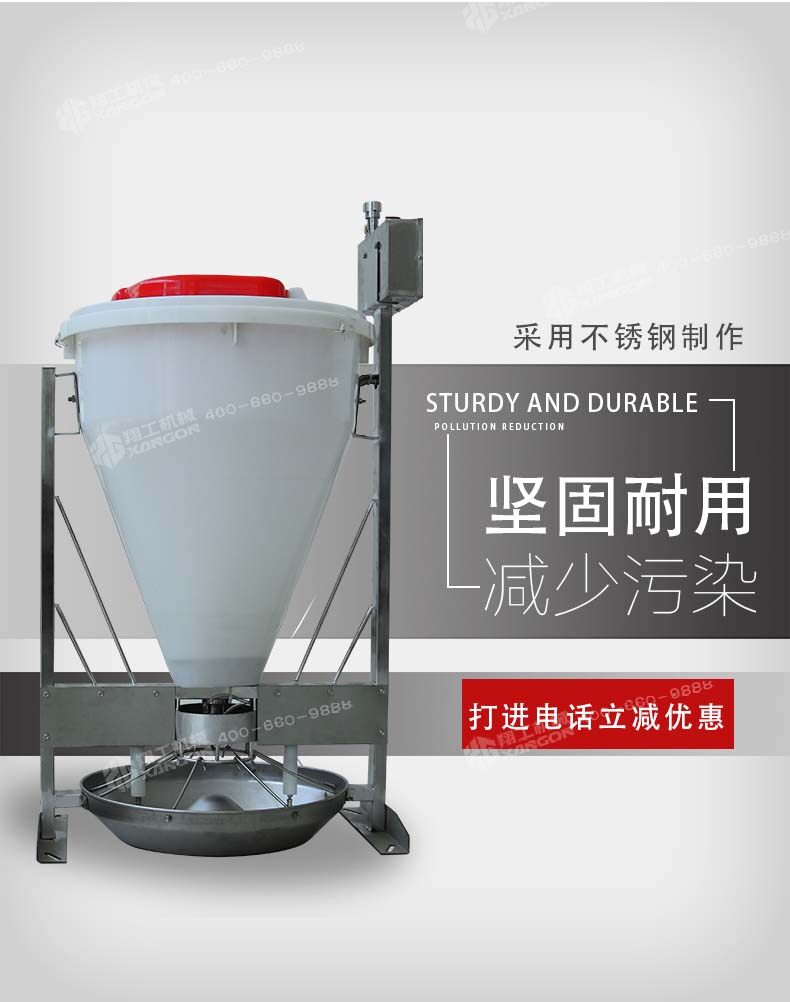 智能豬料槽采用不銹鋼原料和大容積的滾塑料筒組成,鈍化實際,美觀、耐用、實用是它的主要特點。內(nèi)部控制的元器件采用進(jìn)口數(shù)字化非接觸性電子元器件,壽命比普通的高10倍以上, 機械壽命進(jìn)一步提升、減少維護(hù)的煩惱。