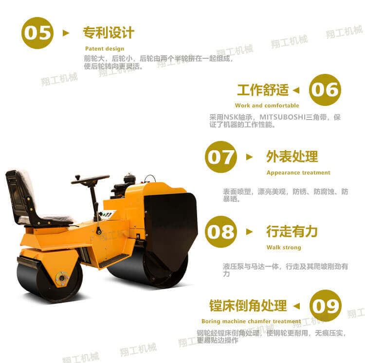 山東翔工XYL-850座駕壓路機=無縫鋼輪 進口軸承(軸承決定壽命) 原裝進口美國丹弗斯液壓系統(tǒng) 加黃油的黃油孔 常發(fā)6馬力風(fēng)冷柴油機 無極變速 2t壓實力 電磁離合振動 單獨的震動按鈕 前進后退手柄 可靜碾可震動 鋼輪采用鏜床技術(shù)(故障率更低)。