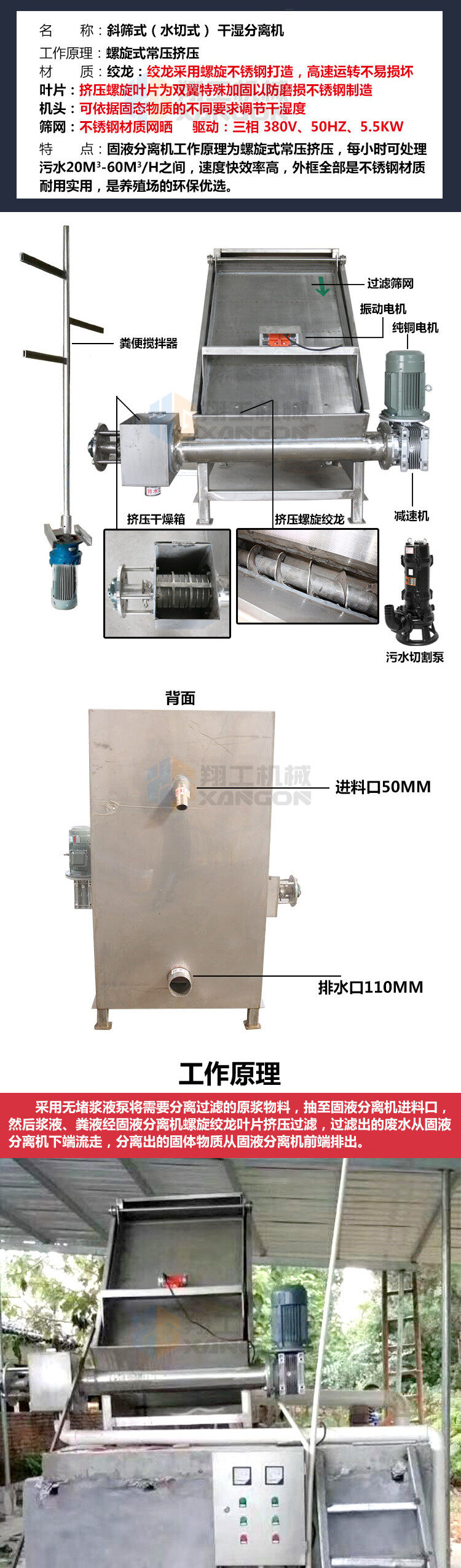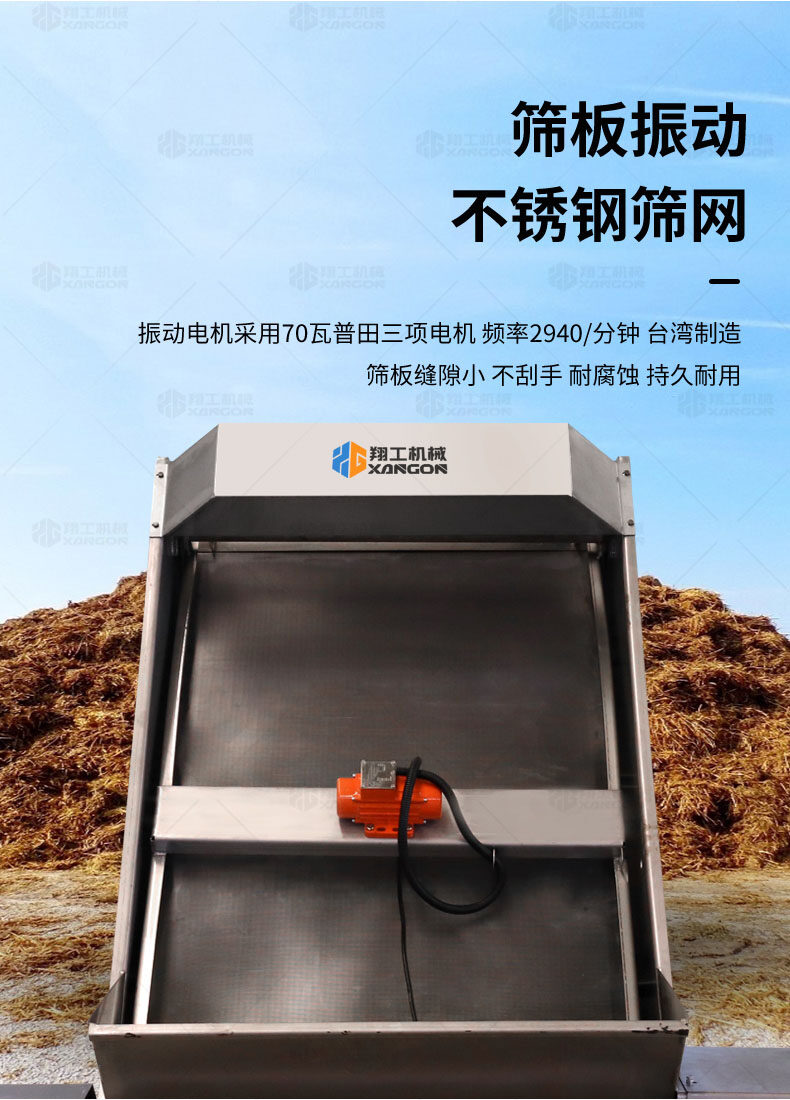 斜篩式固液分離機(jī)是一款針對含固率較小,含水率較大的污水、糞水、沼液等進(jìn)行大規(guī)模固液分離的設(shè)備。其設(shè)備外殼采用全不銹鋼打造,圓筒濾網(wǎng)則采用尼龍材質(zhì)制成——耐腐蝕性強(qiáng)。