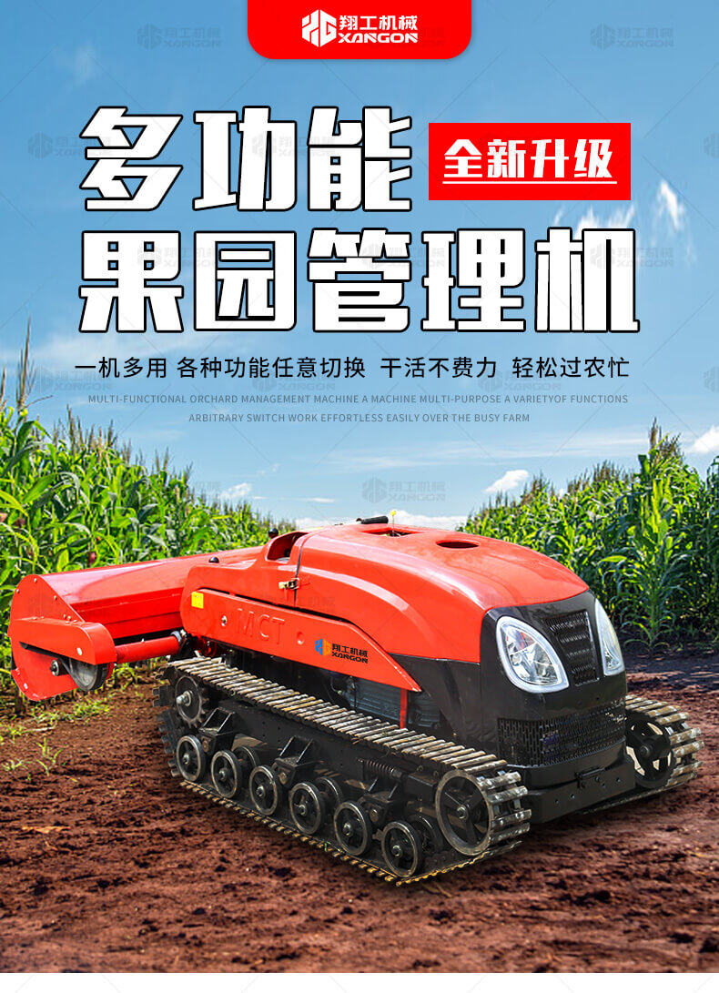 本產(chǎn)品操作方式為遙控操作,車身超低,可原地轉(zhuǎn)向,是專門針對果園開發(fā)的新型產(chǎn)品。主機(jī)可配裝多種機(jī)具,可旋耕,除草,開溝,割草,施肥等,適用于各種果園樹下的田間管理。省力效率高,節(jié)省勞力減輕勞動強(qiáng)度。