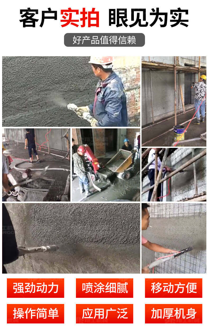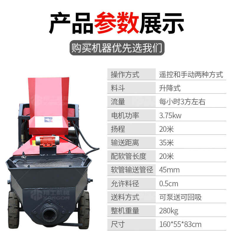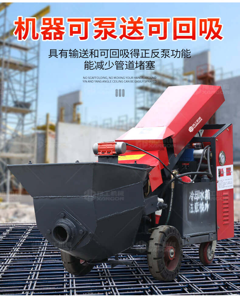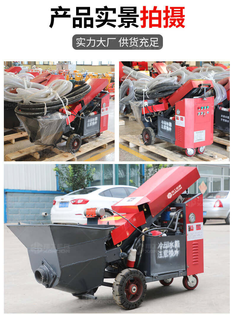 商品預(yù)拌砂漿,石膏砂漿,高標(biāo)號自拌砂漿,高強(qiáng)無收縮灌漿料,自流本機(jī)器采用成熟液壓推進(jìn)技術(shù)、泵車原理,革命性的采用斜體升降式布局,模塊化構(gòu)件,且電機(jī)功率小,揚(yáng)程高、體積小、重量輕等顯著優(yōu)點(diǎn),機(jī)器標(biāo)配全軟管,方便移動(dòng)易施工,改善了以往砂漿泵的體積笨重、磨損快、難維護(hù)的缺點(diǎn)。