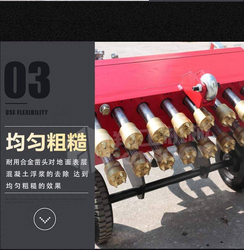 XG-P17A手推式地面鑿毛機,主要為高速公路、高速鐵路的橋面、機場、橋梁、停車場等各種混凝土地面新建鋪裝時對地面表層混凝土浮漿的去除,達到均勻粗糙而設(shè)計的。對各種陳舊地面做翻新前的地坪處理;去除破損地面凸起部分;環(huán)氧樹脂地面鑿毛;地面做防滑面;對需二次鋪裝新舊面層打毛等具效率高的鑿毛工具。