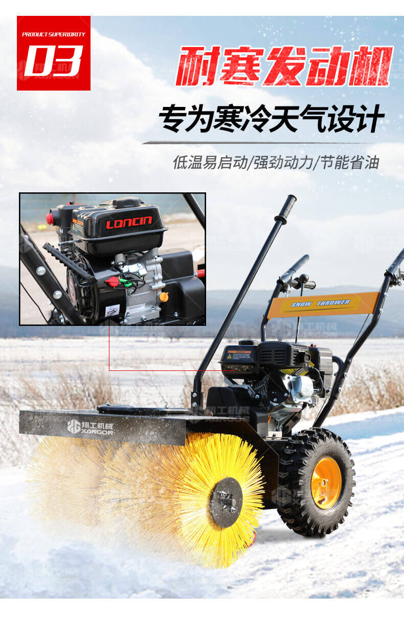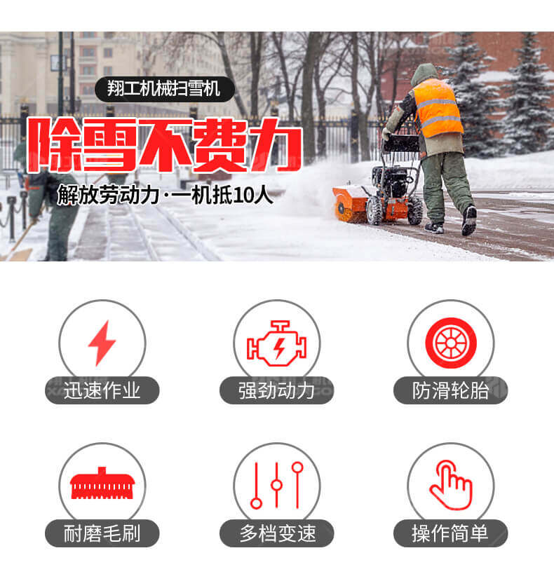 1、節(jié)省勞動力,一臺機(jī)器能完成至少20個人的工作量 2、節(jié)省管理成本,降低環(huán)衛(wèi)工人的交通事故率 3、清掃人行道等路面非常干凈,不留殘雪