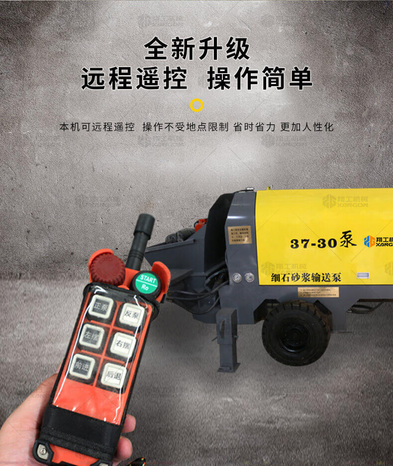 細(xì)石砂漿輸送泵是專業(yè)的砂漿輸送設(shè)備,可用于坡道灌漿,水平地面,隧道澆筑,模板灌漿。