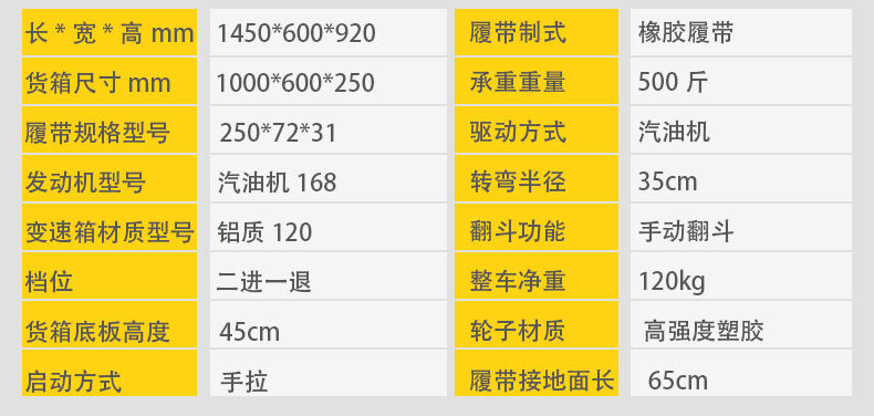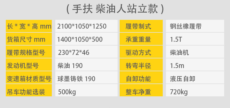 手扶式履帶運(yùn)輸車它是采用手扶式的方式駕駛,自動靈活,安全可靠,可以在泥濘、結(jié)冰道路、沙漠、沼澤以及土質(zhì)松軟或氣候條件不太好的接近角和離地角行駛。它的性能穩(wěn)定,功能強(qiáng)勁,使用能力進(jìn)一步提高。運(yùn)載能力強(qiáng),爬坡能力大,操作簡單,維修保養(yǎng)容易。