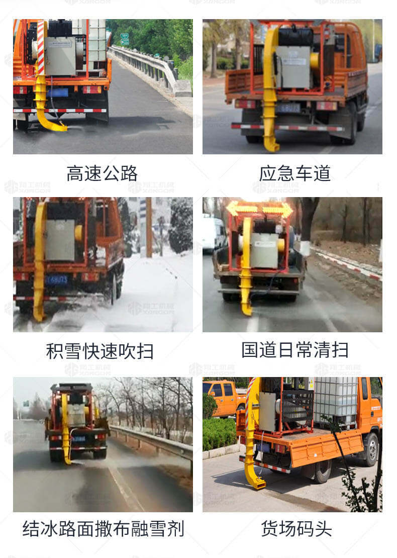 風機采用高壓離心內機,額定轉速2900rpm,風量8000m3/h以上,風壓7000Pa以上,風力強勁。 通過對制造質量的嚴格控制,風機噪音低于82db,運行穩(wěn)定可靠 針對公路吹掃作業(yè)特點,配有專門設計的吹風管。吹風管可以伸縮調整高度,可以轉身以適應不同作業(yè)需求,在非作業(yè)