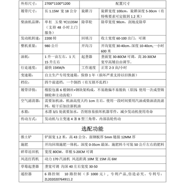 田園管理機(jī)是一種多功能小型農(nóng)田作業(yè)機(jī)械。該機(jī)具有重量輕、功能多的特點(diǎn),主要作業(yè)項(xiàng)目有深旋、噴藥、復(fù)土、鋤草、中耕、開(kāi)溝、起壟、破碎、運(yùn)輸、起壟覆膜、根莖收獲等。