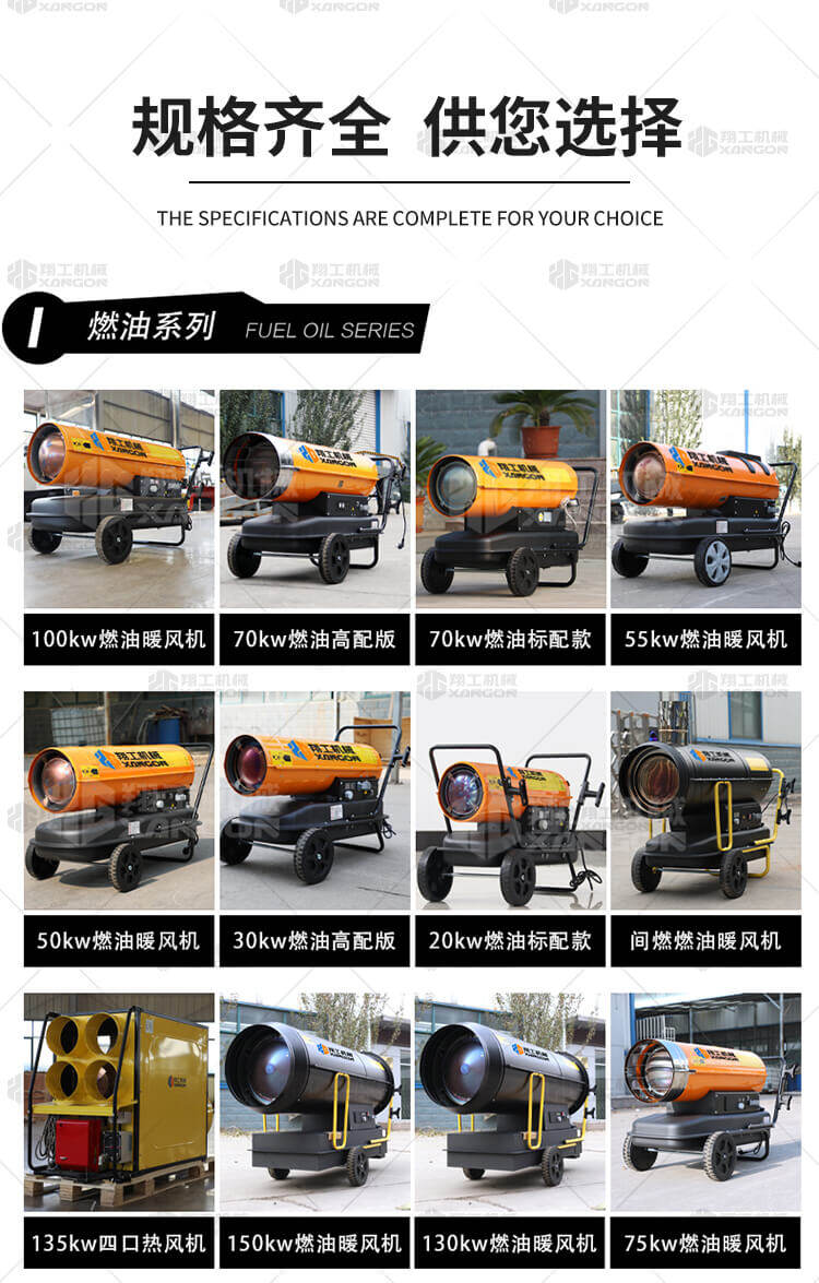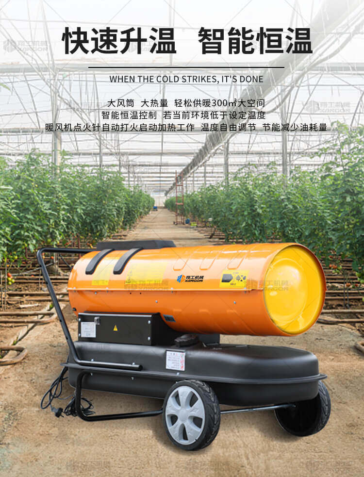 燃油暖風(fēng)機(jī)可對禽畜取暖,育雛取暖,花卉養(yǎng)殖,大棚蔬菜瓜 果,商場,車間,展會進(jìn)行取暖。