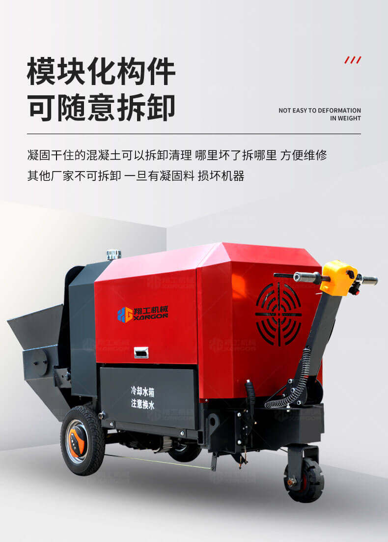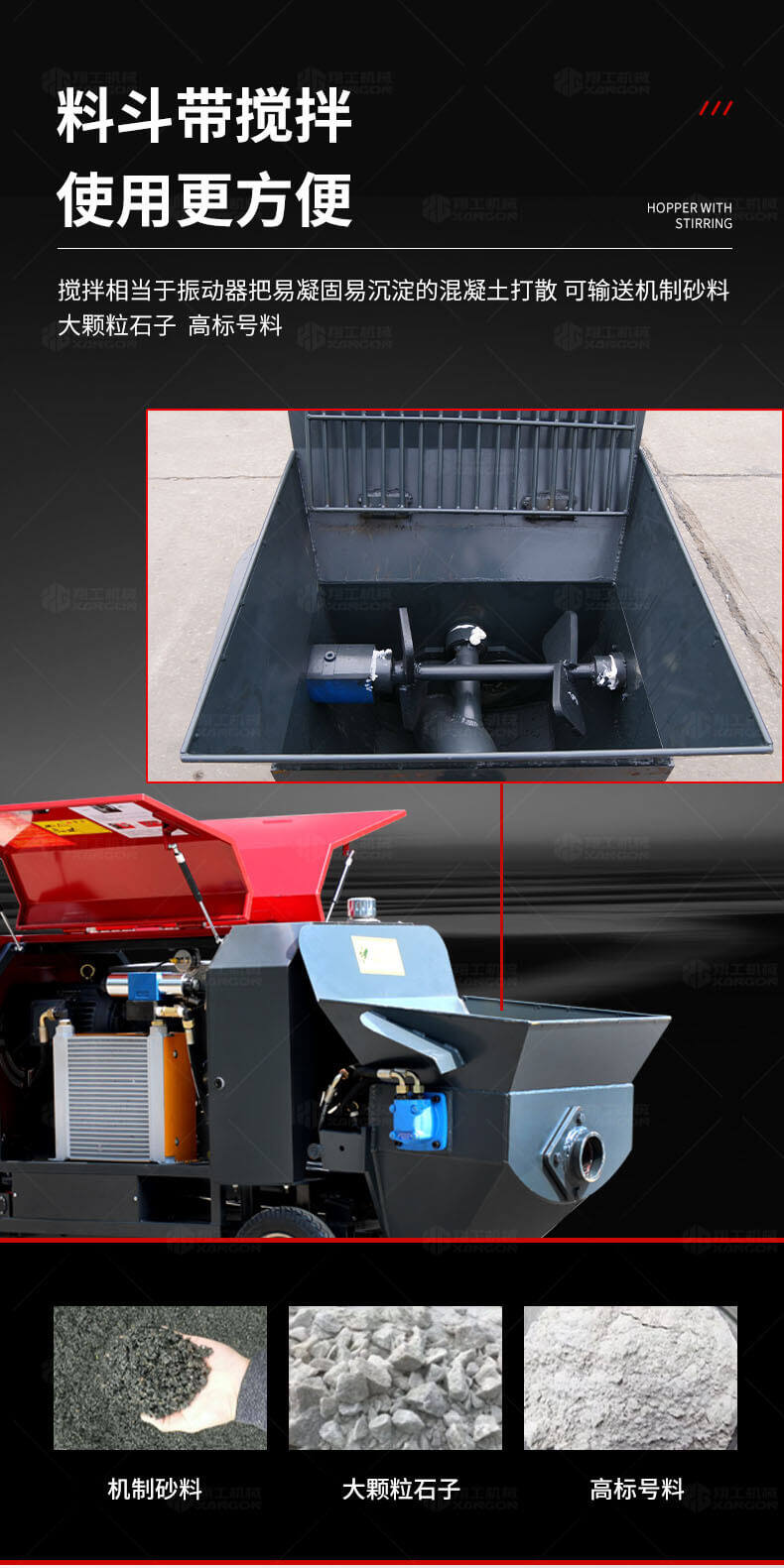 這款7.5KW型澆筑泵帶有自動攪拌功能,性能可靠,設(shè)備各個結(jié)構(gòu)制造科學(xué),電機(jī)功率大、性能穩(wěn)定、施工效率高等優(yōu)勢,使用電動澆筑泵大大提高了施工效率,降低勞動強(qiáng)度,節(jié)約人工,被廣泛應(yīng)用。是工程施工的好幫手。