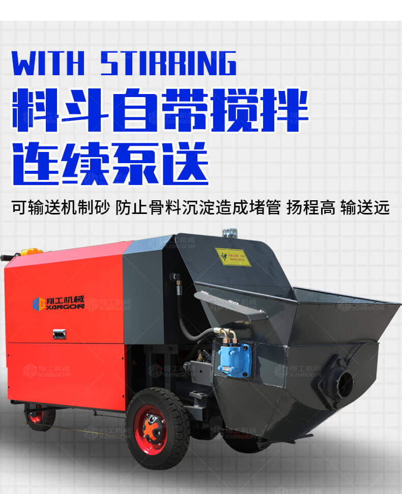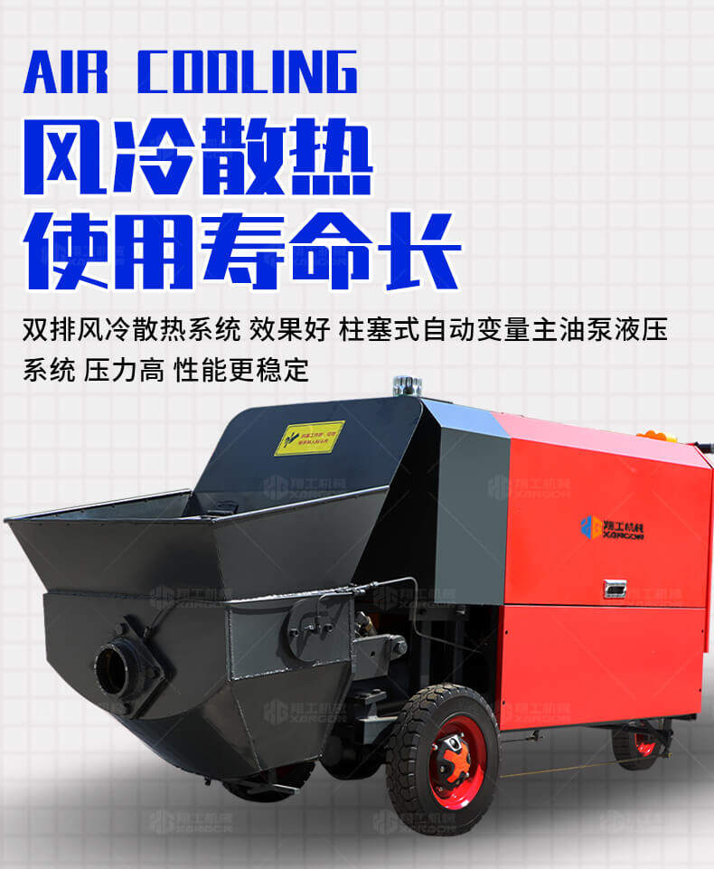 采用獨(dú)創(chuàng)的泵車尾輪驅(qū)動(dòng)系統(tǒng)輕松解決移動(dòng)時(shí)帶來的各種困難,采用雙排風(fēng)冷散熱系統(tǒng)散熱效果更好,液壓系統(tǒng)采用壓力更高,性能更穩(wěn)定的柱塞式自動(dòng)變量主油泵,采用先進(jìn)的三維立體壓模一體式自動(dòng)攪拌料斗可輸送機(jī)制砂,高標(biāo)號混凝土,有效緩解積料問題。