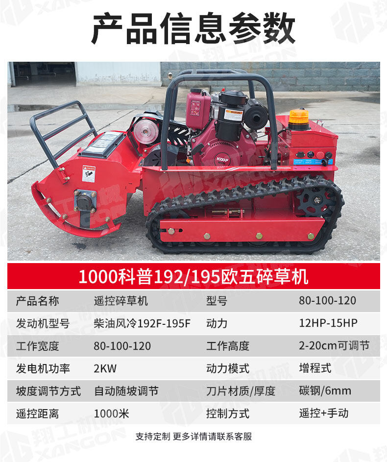 本款柴油遙控割草機(jī)是一款動(dòng)力強(qiáng)勁、專為惡劣工況設(shè)計(jì)的大型專業(yè)設(shè)備。它采用高性能柴油發(fā)動(dòng)機(jī),扭矩大,續(xù)航持久,能輕松應(yīng)對(duì)陡坡、濕地等復(fù)雜地形。先進(jìn)的無線遙控技術(shù)確保了操作人員的安全,實(shí)現(xiàn)了遠(yuǎn)距離高效、精準(zhǔn)割草。特別適用于園林綠化、堤壩養(yǎng)護(hù)、機(jī)場(chǎng)周邊等大面積和危險(xiǎn)區(qū)域的除草作業(yè)。