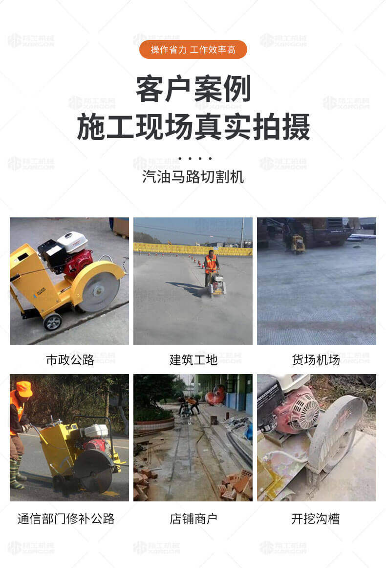 用于公路、市政、建筑、煤氣、通信部門修補公路或開挖溝槽時進行路面切割。相對于電動或柴油動力的路面切割機,操作輕巧省力,運輸方便,工作效率高。