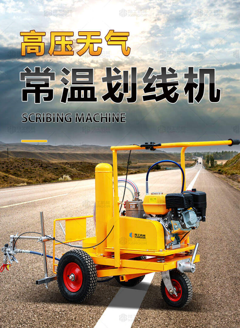 高壓無(wú)氣常溫劃線機(jī)利用汽油機(jī)驅(qū)動(dòng)單注塞泵,使涂料在機(jī)內(nèi)形成高壓進(jìn)行噴涂,索劃線厚薄均勻邊角齊,噴槍架導(dǎo)向桿升降設(shè)計(jì),調(diào)節(jié)噴涂寬度更為準(zhǔn)確方便。該機(jī)器是常溫標(biāo)線施工的專用設(shè)備,主要用于公路、停車場(chǎng)、機(jī)場(chǎng)、加油站、公司廠區(qū)等涂畫直線、虛線、曲線、斑馬線、文字、箭頭、圖形、標(biāo)志等。