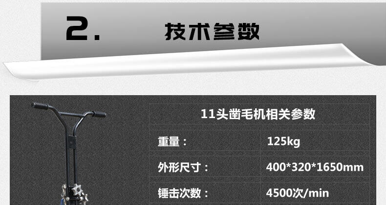 1、11個鑿毛頭的沖擊功率大,可達2200blow/分鐘,危害小;