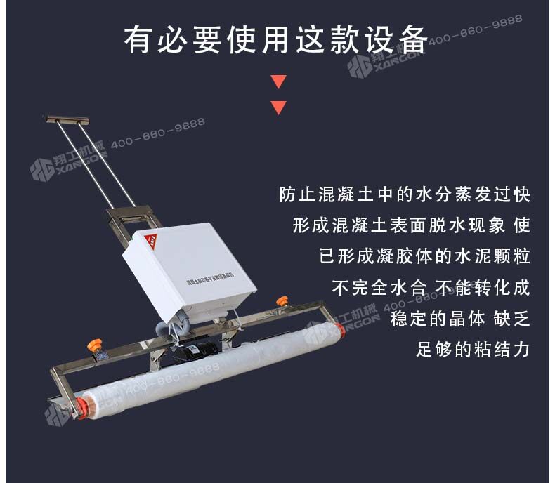 混凝土澆注后,如果養(yǎng)護(hù)不及時(shí)就容易產(chǎn)生一些不良效果,如氣候炎熱、空氣干燥等情況,我們就有必要使用這款設(shè)備,防止混凝土中的水分蒸發(fā)過快,形成混凝土表面脫水現(xiàn)象,使已形成凝膠體的水泥顆粒不完全水合,不能轉(zhuǎn)化成穩(wěn)定的晶體,缺乏足夠的粘結(jié)力。因此,混凝土表面會出現(xiàn)剝落或粉粒脫落。另外,當(dāng)混凝土強(qiáng)度不夠時(shí),過早蒸發(fā)水分會產(chǎn)生較大的收縮變形和干縮裂縫。因此,混凝土澆筑后的初期養(yǎng)護(hù)非常重要,終凝后應(yīng)立即進(jìn)行養(yǎng)護(hù)。