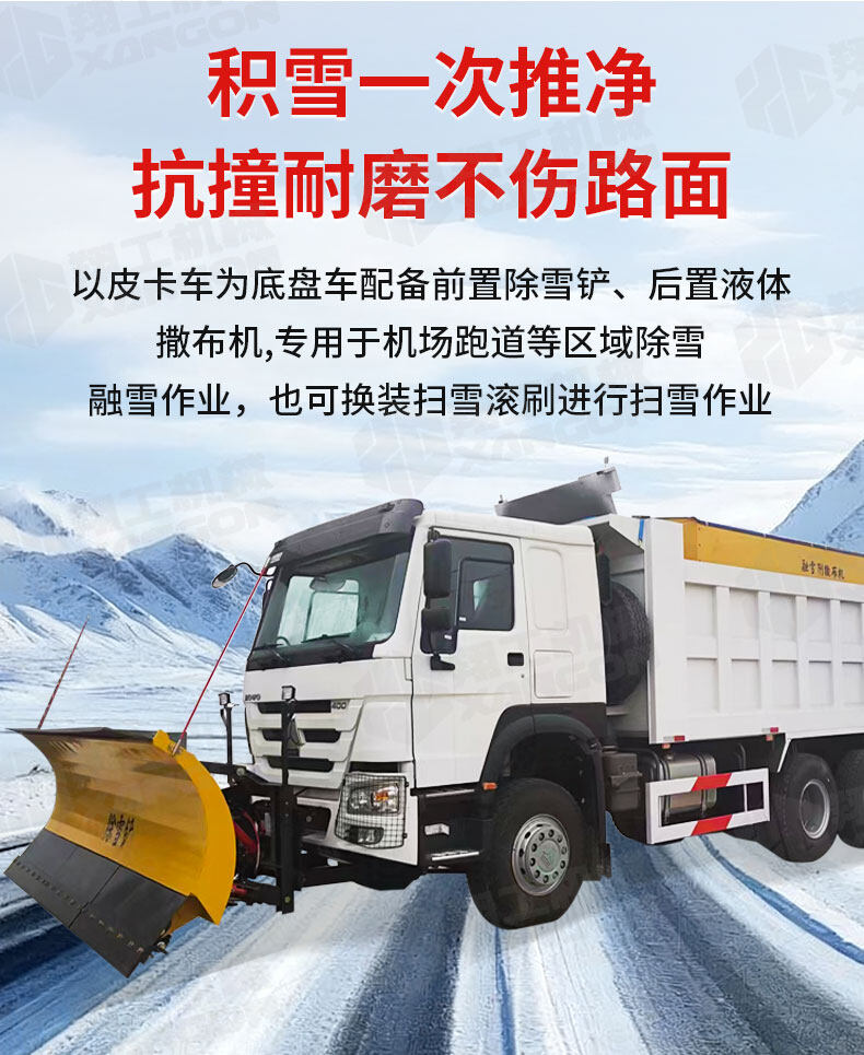 用途以皮卡車為底盤車配備前置除雪鏟、后置液體撒布機(jī),專用于機(jī)場跑道等區(qū)域除雪融雪作業(yè),也可換裝掃雪滾刷進(jìn)行掃雪作業(yè)。